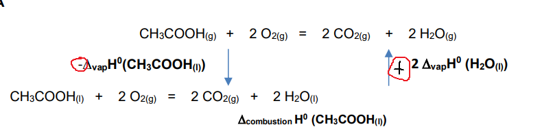 Du coup, pour passé de CH3COOH (g) à CH3COOH (l) on doit utiliser l'enthalpie de vaporisation de CH3COOH que l'on nous donne, ici 150 kJ/mol.