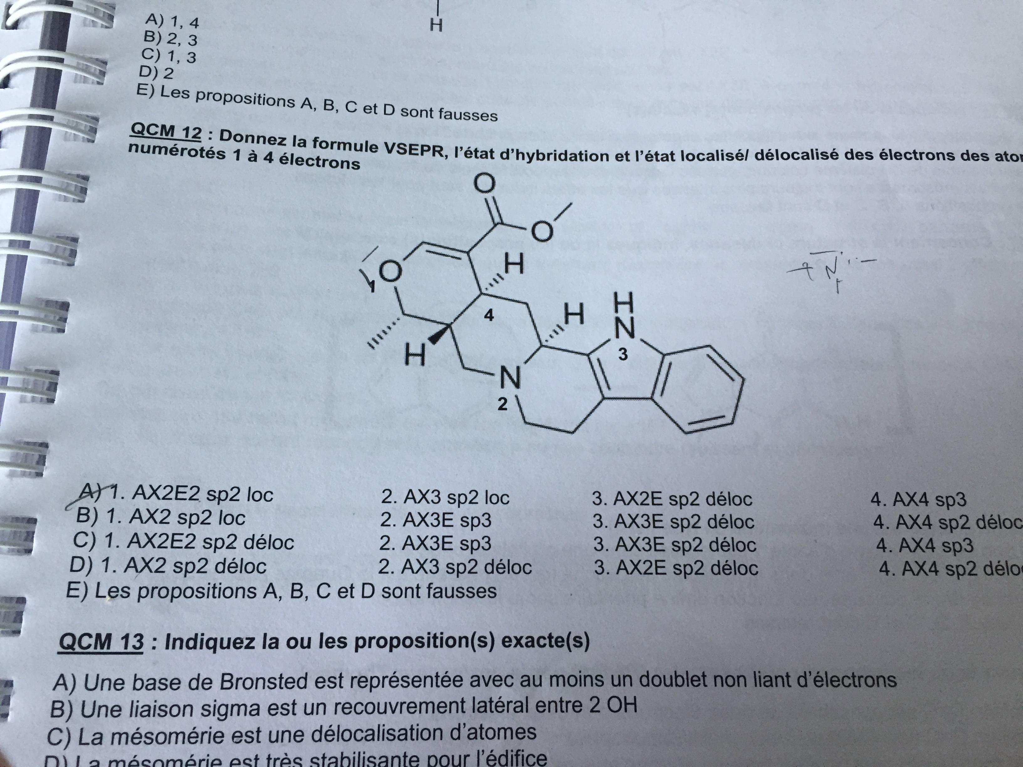 Alors, là tu as un QCM un peu compliqué sur la réhybridation orbitalaire qui est plus trop au programme, mais sait on jamais, je vais t'expliquer comment ca marche