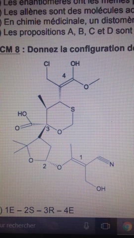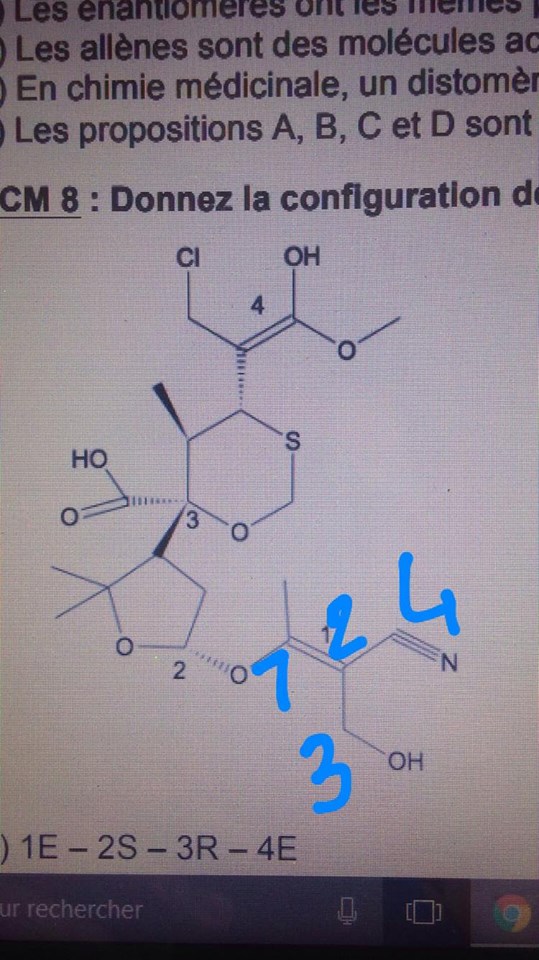 Dans ce QCM, on nous demande de donner la configuration absolue du carbone 2, j'ai trouvé S mais la correction R, et j'arrive pas à comprendre pourquoi, mais avant j'ai une question par rapport au dédoublement, par exemple, dans cette atome on prend la double liaison C1=C2.