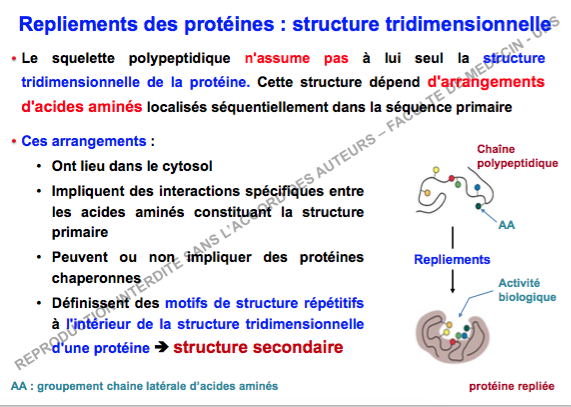 Je me pose une petite question dans la partie de la structure secondaire, il est écrit que "le but de l'organisation dans l'espace de la protéine permet la création de motifs répétitifs à l'intérieur de la structure tridimensionnelle d'une protéine "