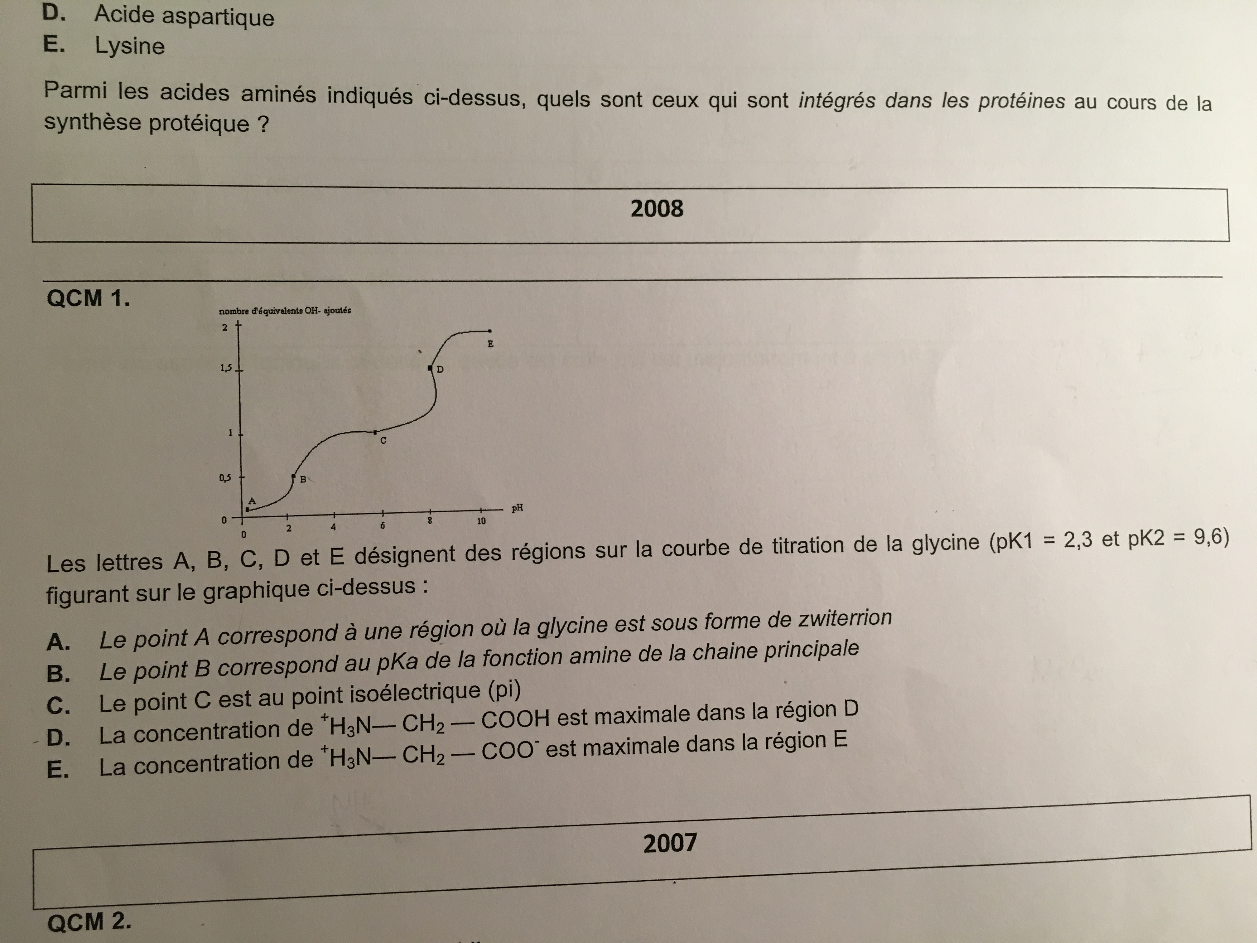 :arrow: or le pka de la fonction COOH vaut environ 2.2 et celui du groupement NH3 vaut 9.4