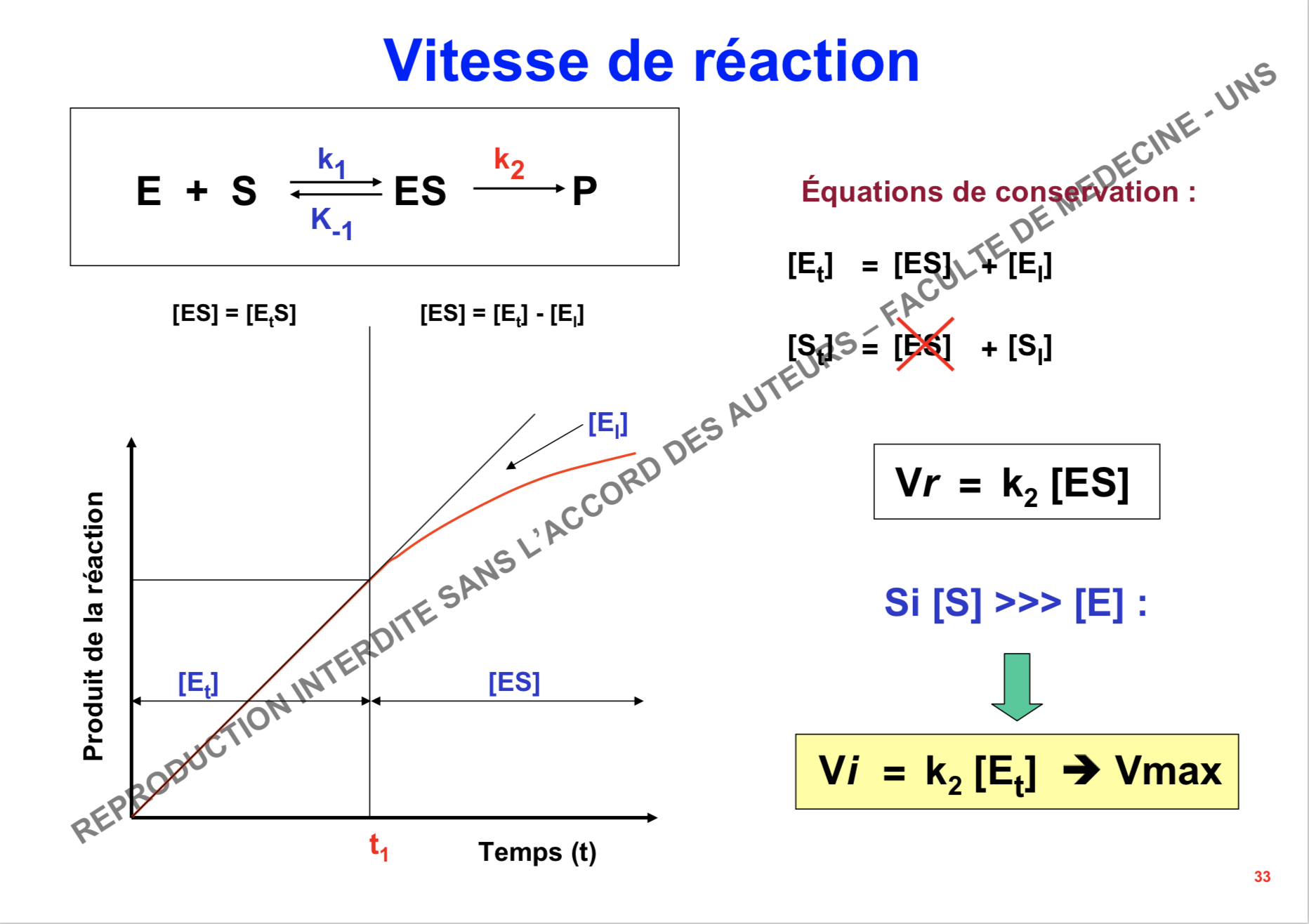Voila en regardant les diapos de la prof je me suis demandé si on pouvait dire que c'est la vitesse de réaction qui est maximale a l'état stationnaire était juste ou il faut dire que c'est la vitesse initiale qui est maximale a l'état stationnaire, car dans sa diapo (pièce jointe) elle montre bien que c'est Vi=Vmax.