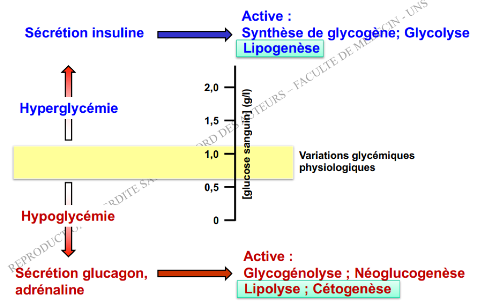 Pourquoi il n'est pas spécifié que le glucagon stimule la lipolyse (pourtant le foie métabolise aussi les lipides) et que l'adrénaline inhibe la glycolyse ?