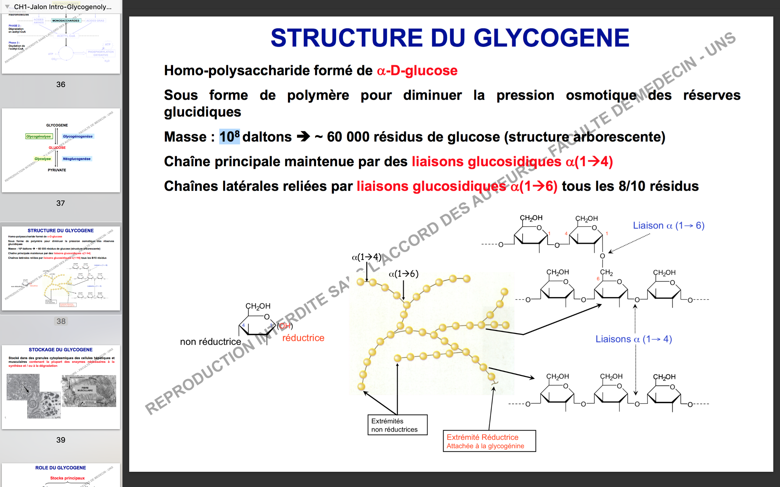 J'ai un doute par rapport à la masse du glycogène qui (selon moi) pendant les années passées valait 108 daltons, or cette année dans la ronéo et la diapo elle est de 10^8 dalton..