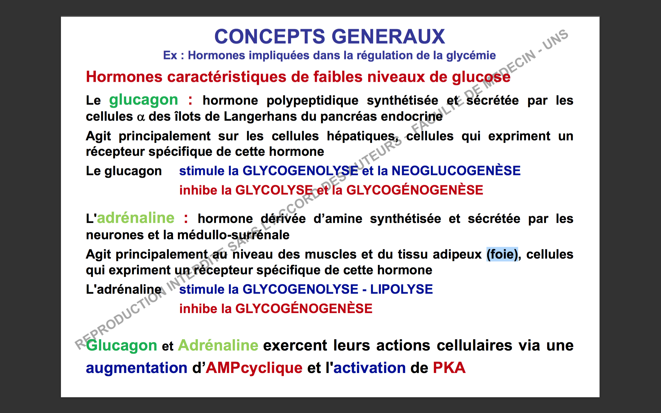 Donc retiens que l'adrénaline c'est sur le muscle et TA et PAS SUR LE FOIE alors que le glucagon agit sur le foie