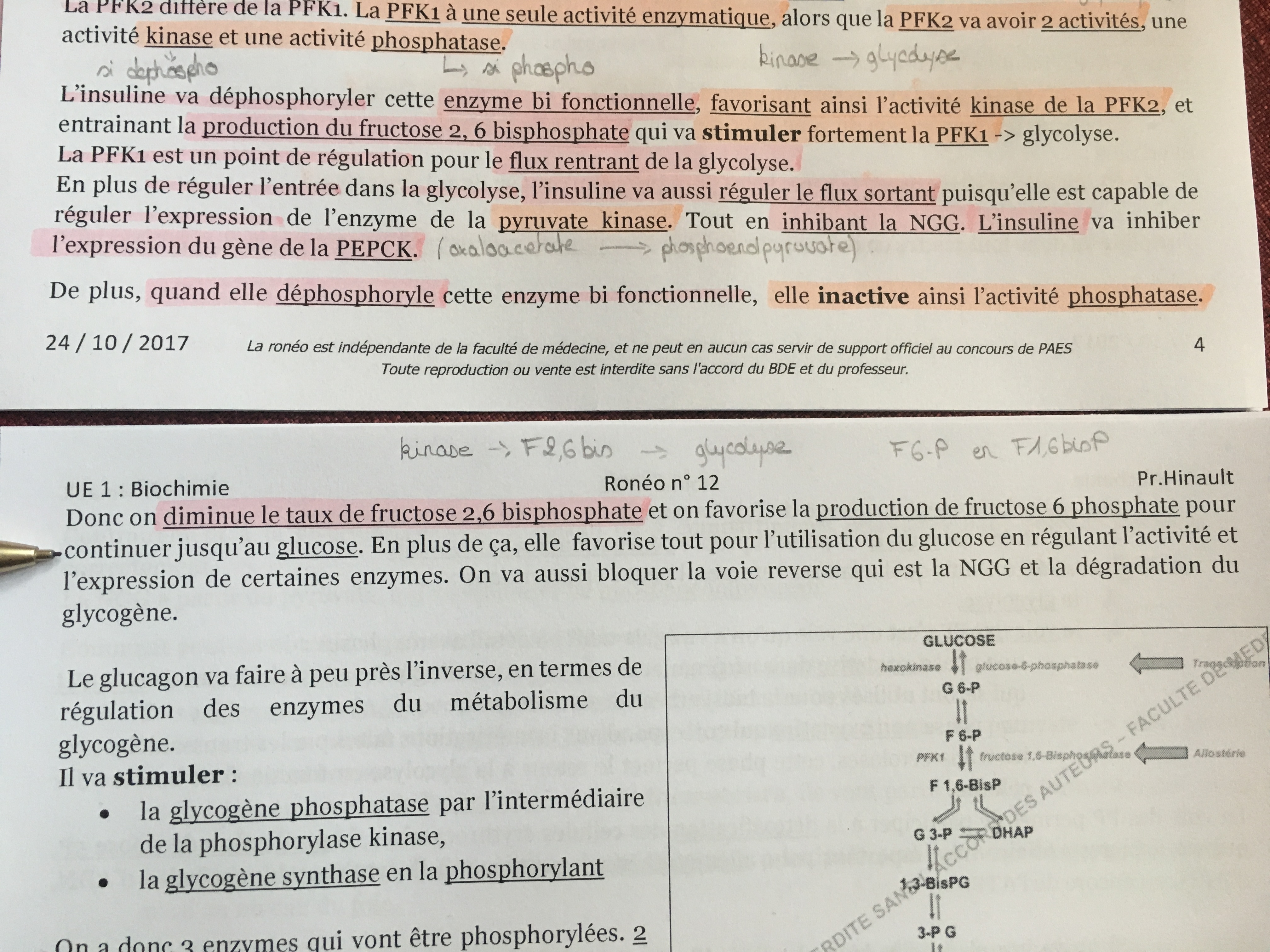À la fin de la page 4 on nous dit « elle (l’insuline) inactive ainsi l’activité phosphatase » du coup pour moi ça revient bien a dire que kinase est activée (en suivant du coup cette logique) on devrait avoir une augmentation du F2,6bisP donc production de F1,6bisP et non de F6P... Ce qui ne concorde pas avec ce qui est écrit en haut de l’an page 5... @@
