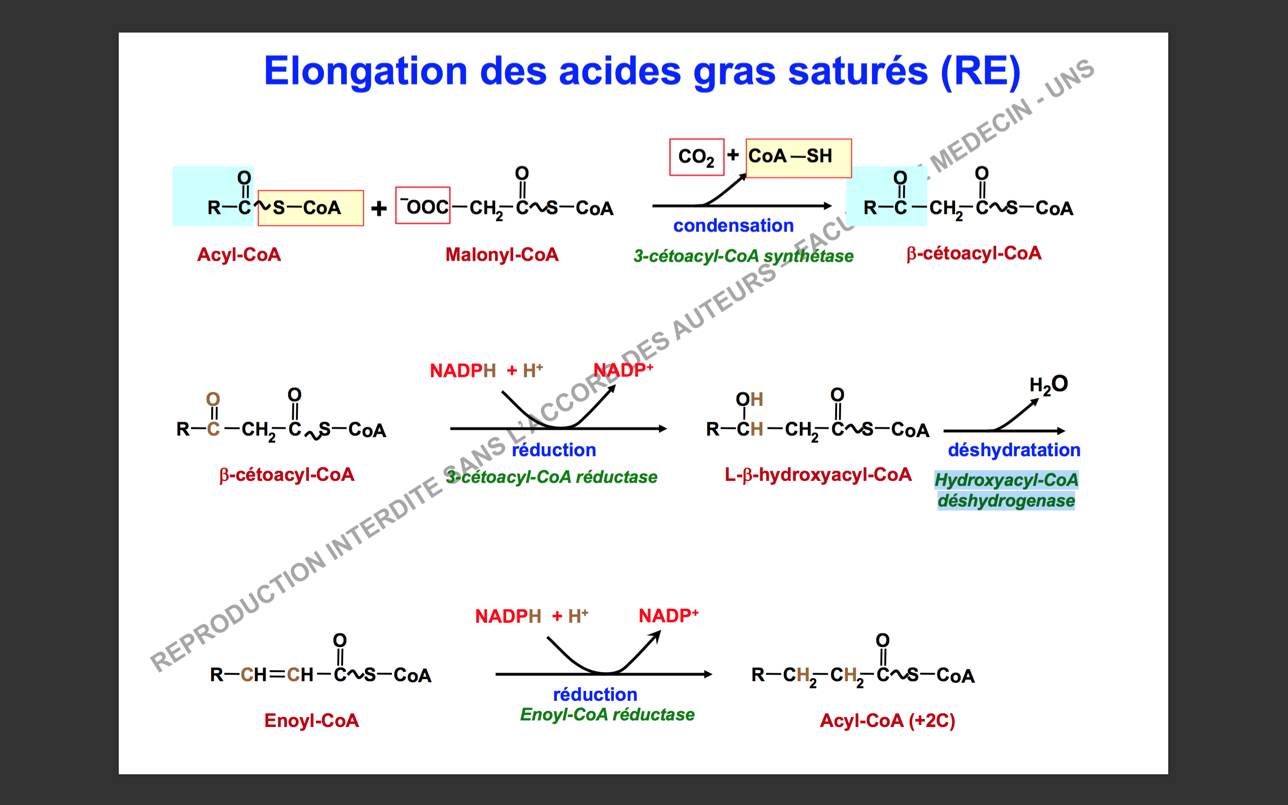 Je ne comprends pas pourquoi lors de l'élongation dans le RE, l'étape de L-b-hydroxyacyl-CoA