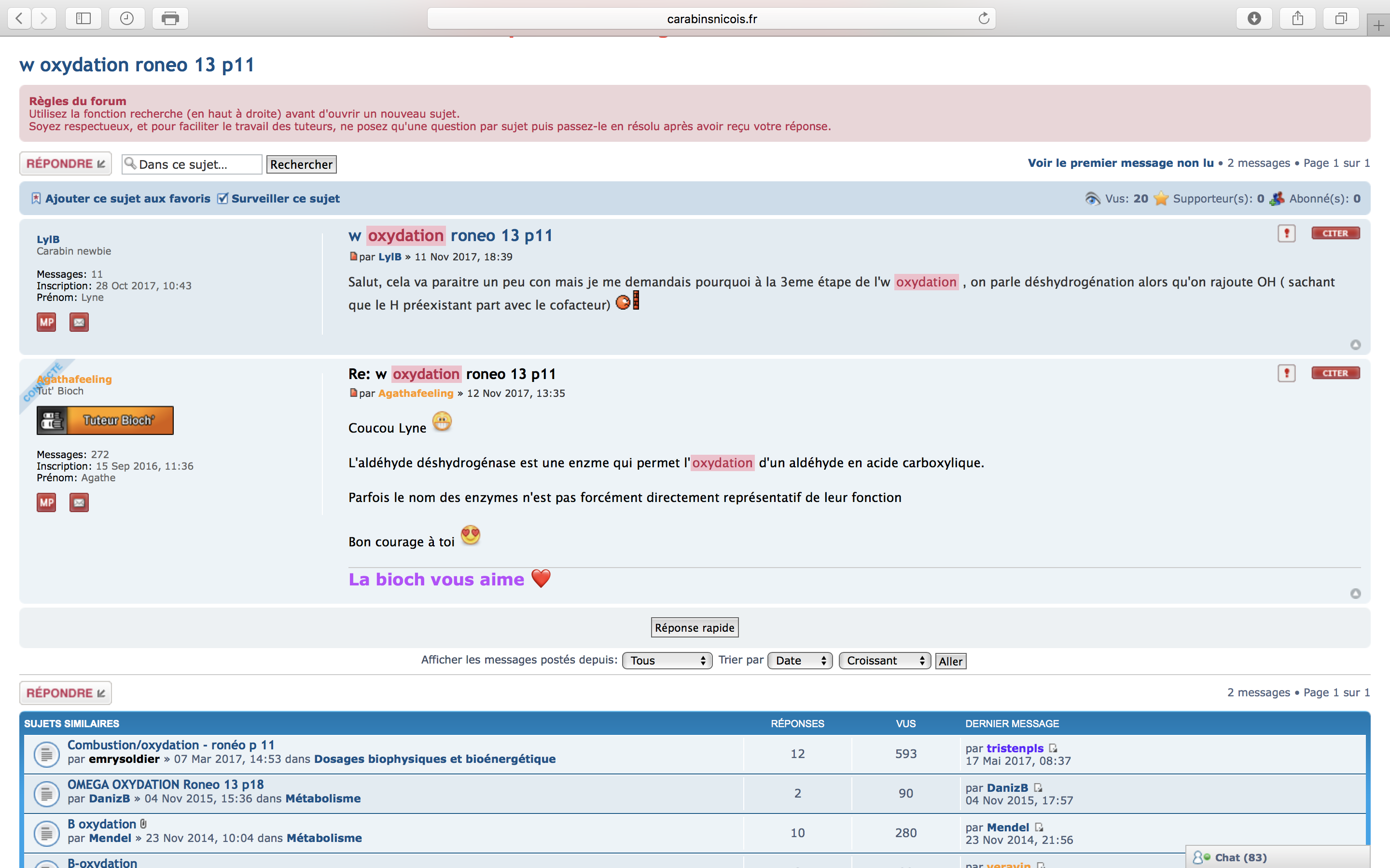 Soyez respectueux, et pour faciliter le travail des tuteurs, ne posez qu'une question par sujet puis passez-le en résolu après avoir reçu votre réponse.