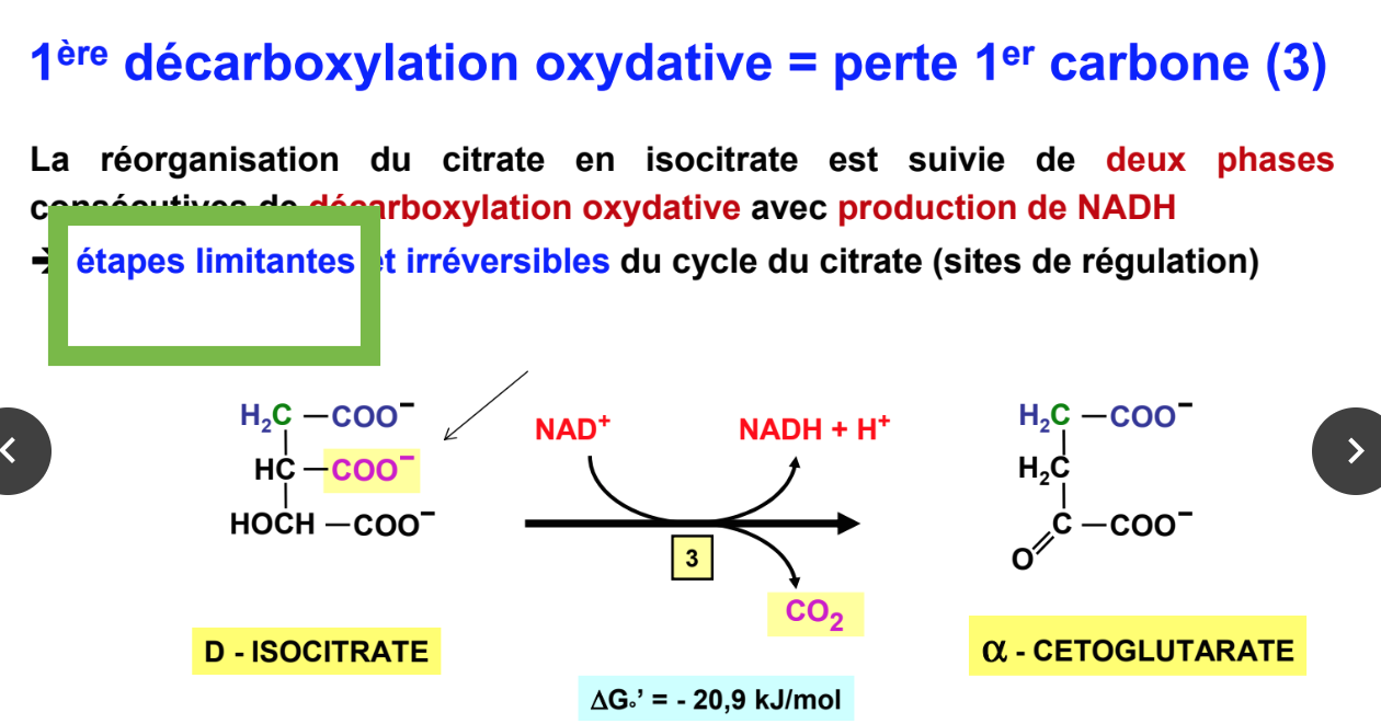En se basant sur le référentiel des diapos la seule étape limitante est la 1ère décarboxylation