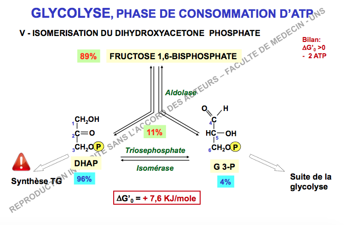 Je pense qu'on passe par le G3P car l'étape d'avant enlève un phosphate du 1,3 bisPG (c'est plus simple) puis on fera jouer une isomèrase pour avoir le DHAP nécessaire à la synthèse des TG .