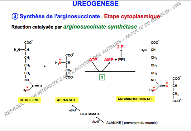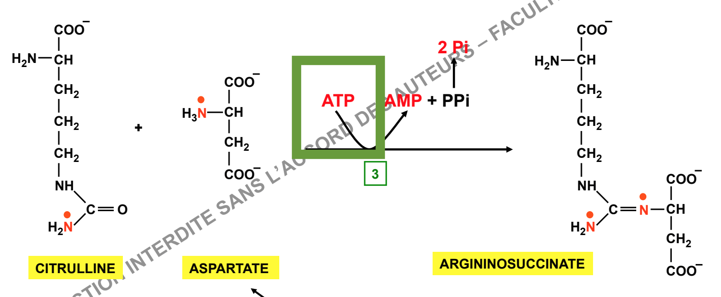 l'argino succinate synthétase, ce qui devrait nous faire une production de 1ADP, or dans le bilan y prod de 2ADP.