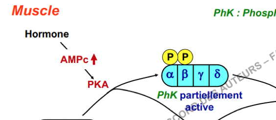 je voulais savoir pourquoi dans la roneo la sous unité alpha n'est pas phosphorylée quand il y a augmentation d'AMPc alors que sur la diapo c'est dit l'inverse? (avec le petit p sur la sous unité)