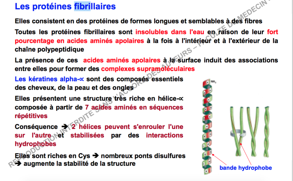 Cet item est compté VRAI mais je ne comprends pas pourquoi car on dit que les prot fibrillaires sont riches en AA apolaires, hors la cystéine est polaire..