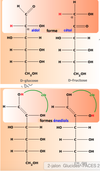 Les formes enediols on les obtient en faisant un enolisation du fructose pour qu'il soit réducteur et puisse etre detecte par la liqueur de fehling. J'ai du mal à voir le lien entre les 2 ..