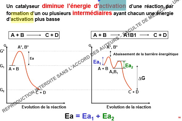 Je pensais que pour baisser cette energie le catalyseur pouvait passer par 1 ou plusieurs états intermédiaires , donc qu'il en faut toujours au moins un