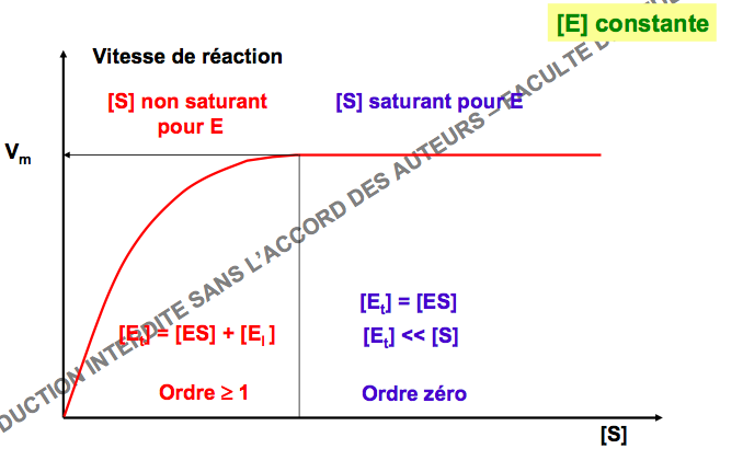 +1 pour moi la vitesse de réaction dépend tout le temps de la quantité d enzyme, qu on soit en conditions saturantes ou non saturantes ...