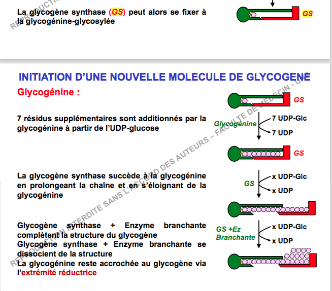 Item C il est quand même écris "la GS vient se fixer une fois les 8 résidus ajoutes par la glycogenine"