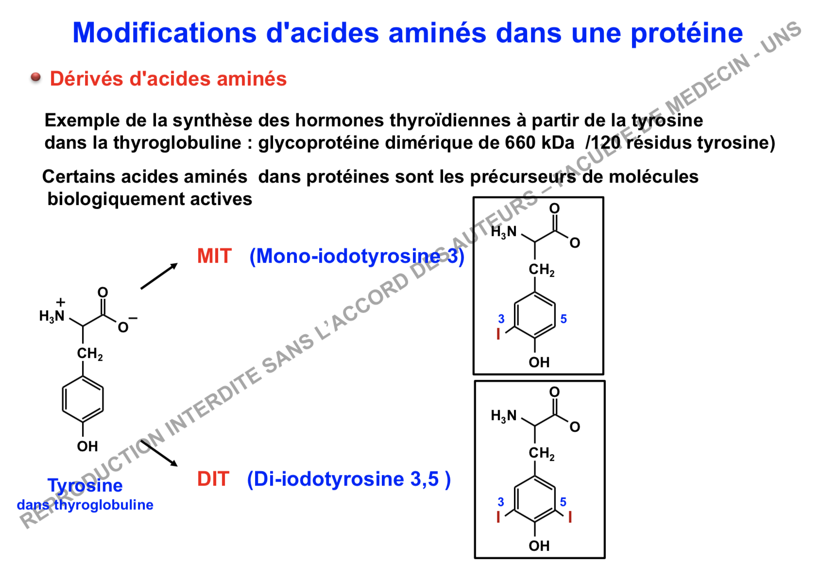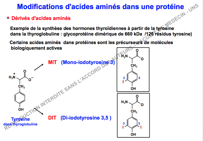 Oui je suis d'accord qu'il y a un soucis, ce ne sont pas les tyrosines libre qui subissent la iodation, mais celle de la thyroglobuline pour moi... !