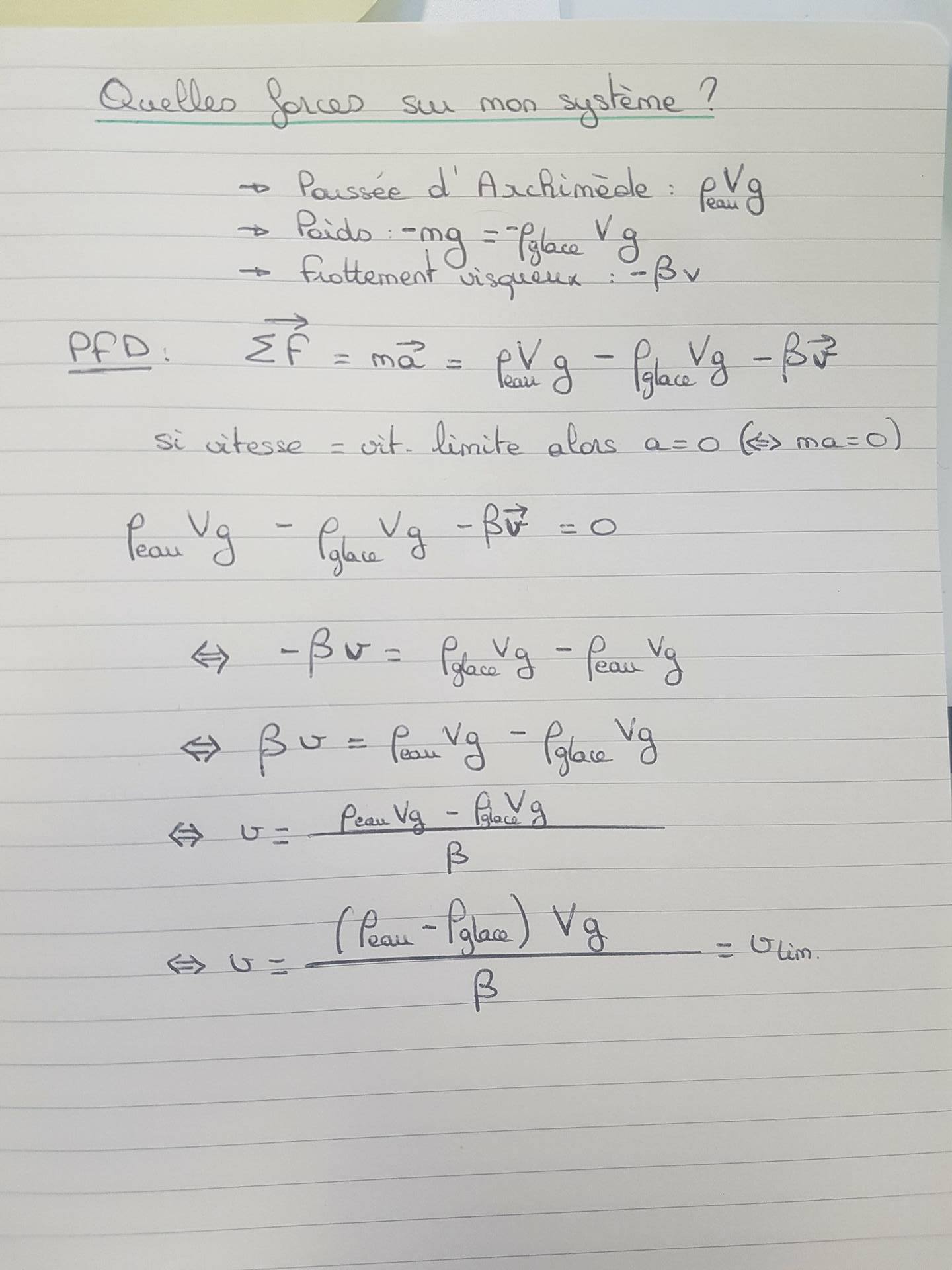 QCM 2: Je ne comprend pas comment il arrive à trouver a= ρeau-ρglace/ ρglace x g @@ @@ @@ @@ @@