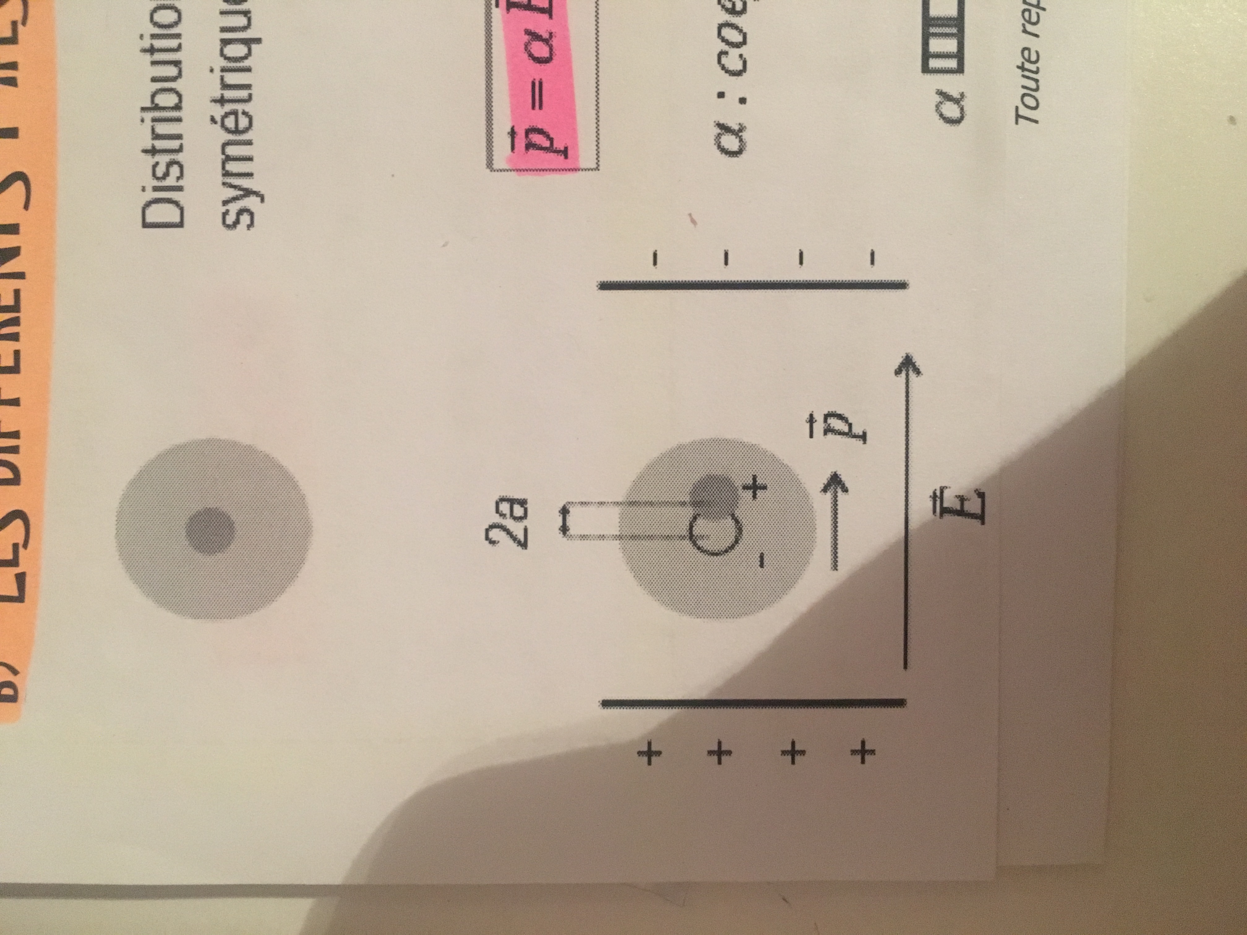 Attention, les charges en dehors des plaques correspondent au champ électrique appliqué pour obtenir un moment dipolaire induit.