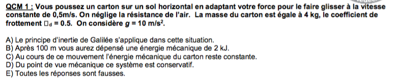 Du coup on aurait tendance à compter cet item faux vue que le carton est soumis à une force de forttement (qui est donc non conservative).