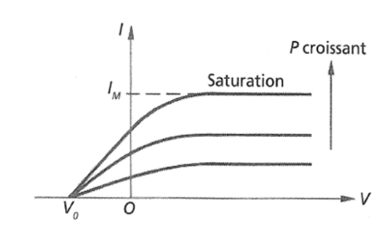 Y'a écrit nul part dans le cours qu' On pouvait avoir un courant électrique alors que l’on applique une tension négative "Si on se situe à une tension supérieure à la contre-tension maximale". Si on applique une tension négative on est forcément inférieure à V0 non ?