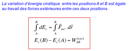 "La variation d'énergie cinétique entre À et B correspond au travail des forces extérieures entre À et B"