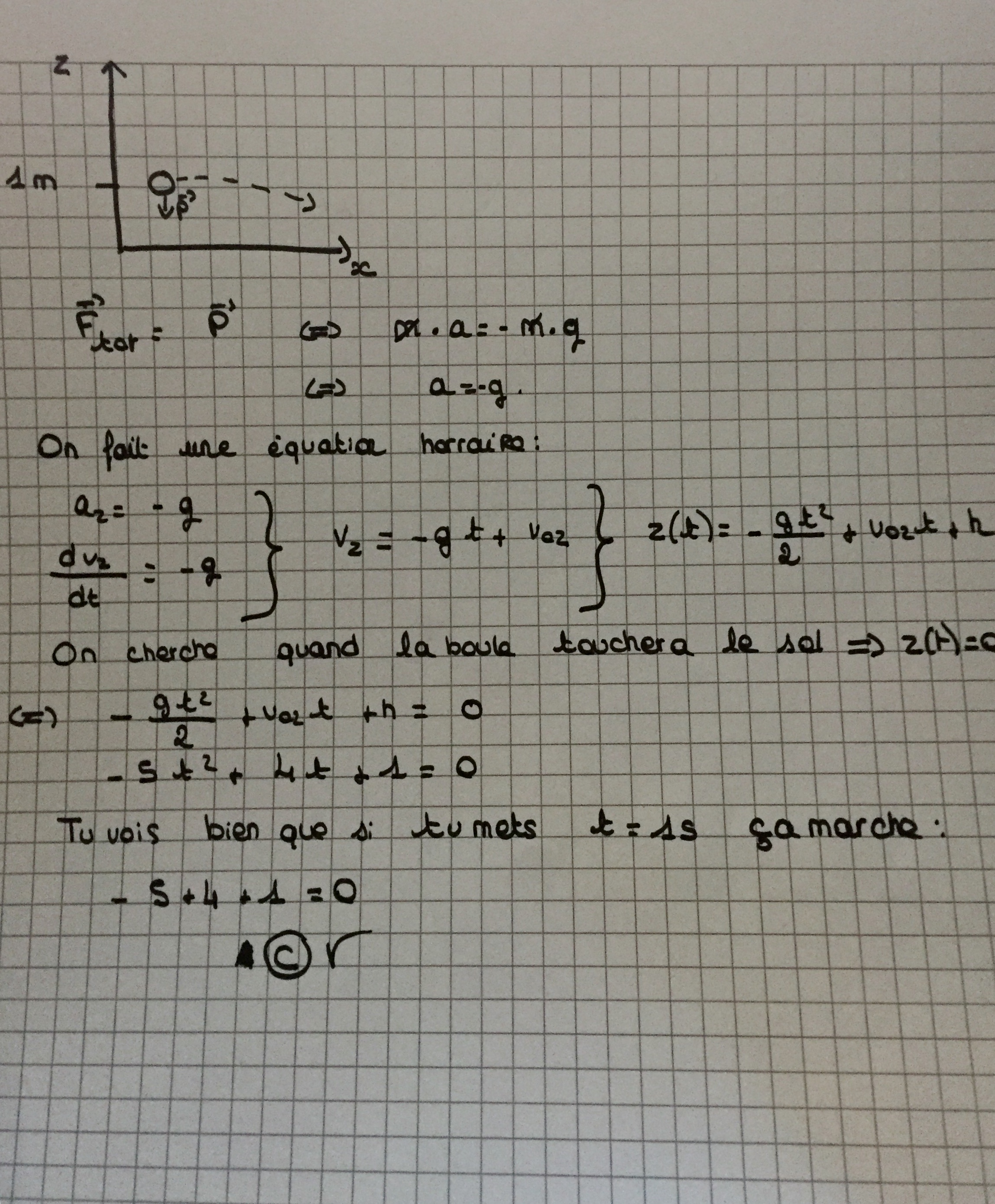 Coucou ! Dans l'item D je ne comprends pas comment on sait que la boule touche le sol au bout d'1s.. Rien ne nous le dit dans l'énoncé..