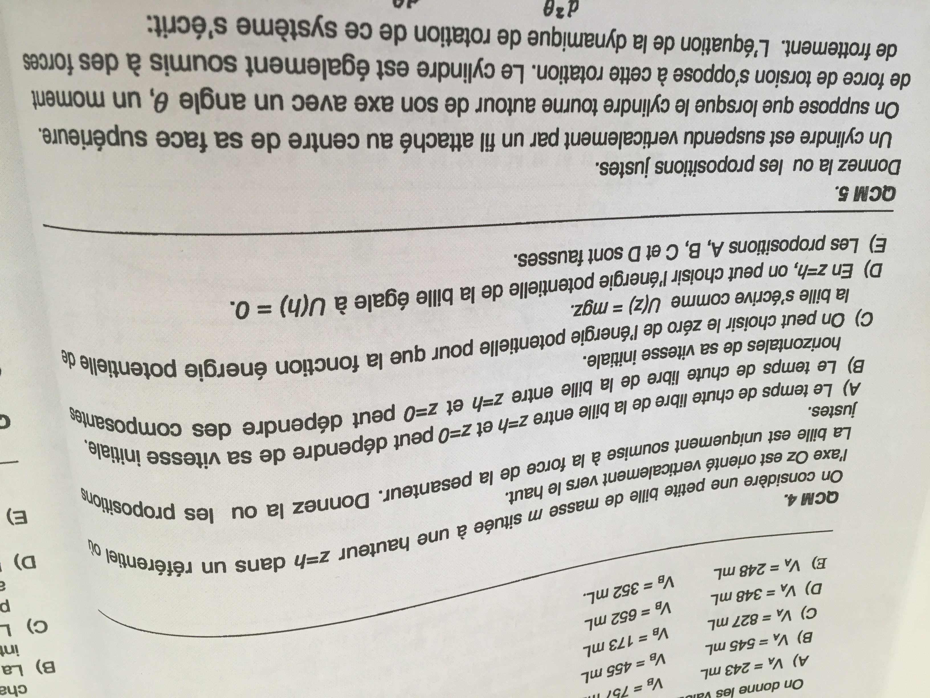 je ne comprends pas pourquoi l'item D est compté juste. Il me semblait avoir compris que d'après le théorème de l'énergie mécanique l'energie potentielle est maximale quand ma bille est a l'arrêt (donc ici quand z=h ou tout en bas quand z=0) et que l'energie potentielle devenait minimale pendant la chute (énergie cinétique alors maximale). j'aurai donc mis faux cet item