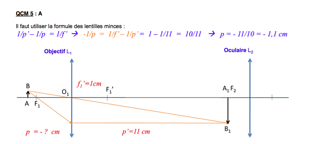 Alors tu pars tout simplement de ta formule des lentilles minces : (pour n = n' = 1)