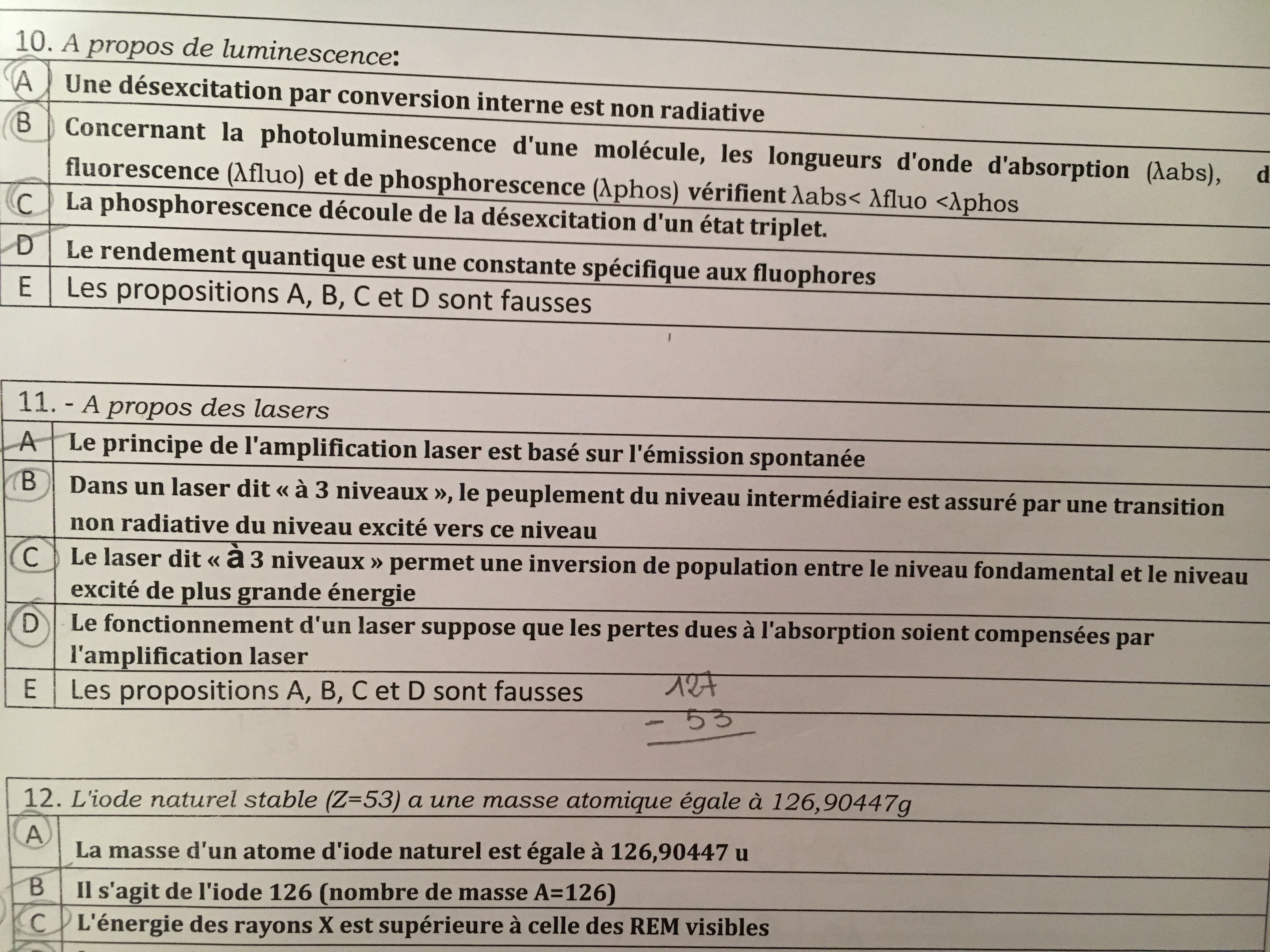 Je l'aurais compté faux aussi dans la mesure où on parle d'inversion de population entre les 2 niveaux de la transition laser habituellement Or dans le laser à 3 niveaux, il s'agit des niveaux fondamental et de moyenne énergie