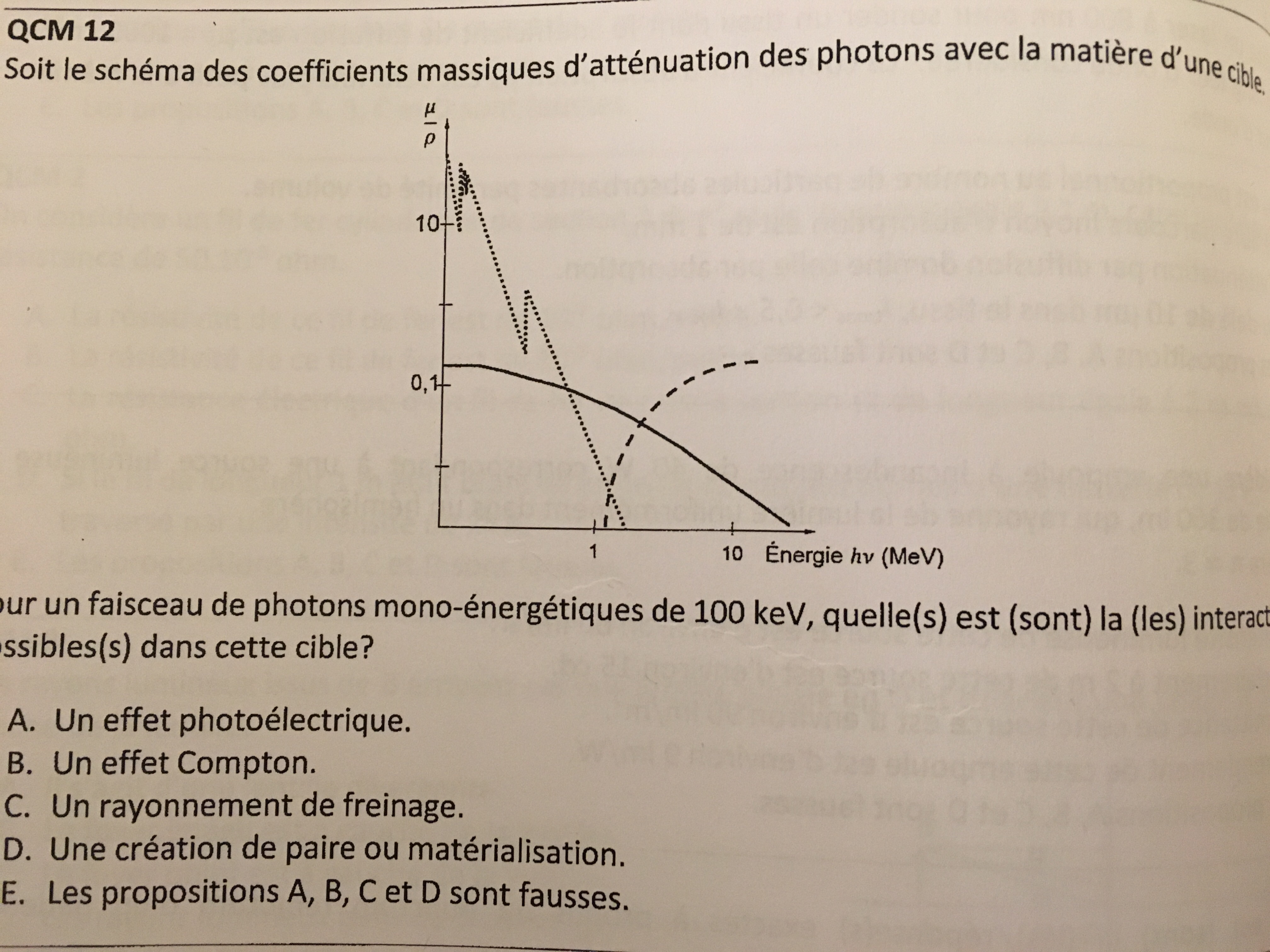 Pour l’item C, il est faux car une interaction par freinage est une interaction électron-noyau, donc rien à voir avec l’électron des photons avec la matière
