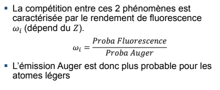 Donc du coup si tu as un atome avec un Z élevé tu as plus de chance d'avoir un photon de fluorescence et inversement si tu as un atome avec un Z faible.