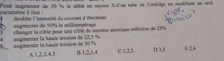 Alors oui l'item 5 est bien faux car si on augmente la haute tension de 22,5% on augmentera le débit du tube de 22,5%² ce qui ne donne pas 50% :)