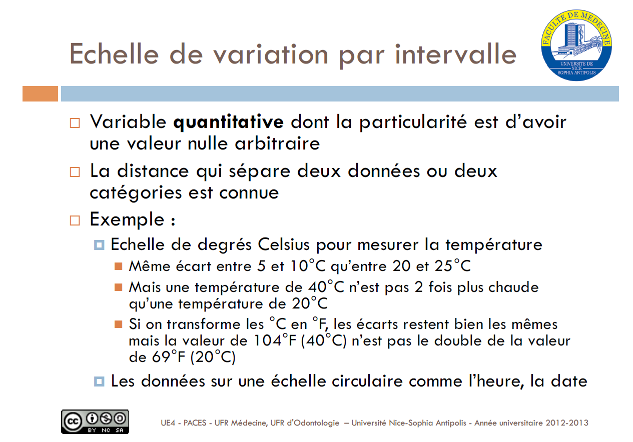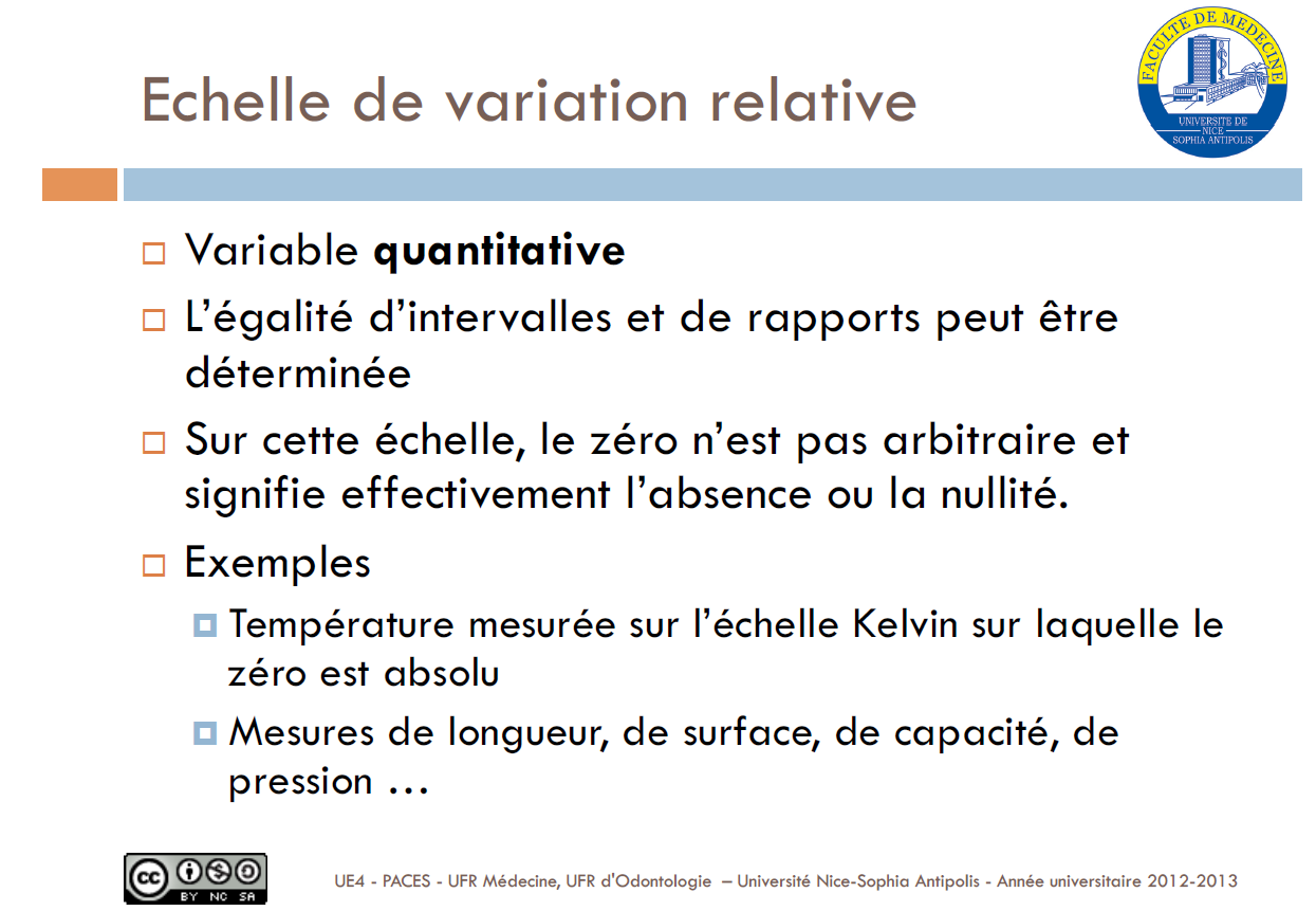 Juste d'après ce que j'ai compris, les distances entre les intervalles de variables quantitatives relatives sont toujours égales et celles entre les variables par intervalle sont connues mais pas forcément égales, c'est bien ça ?