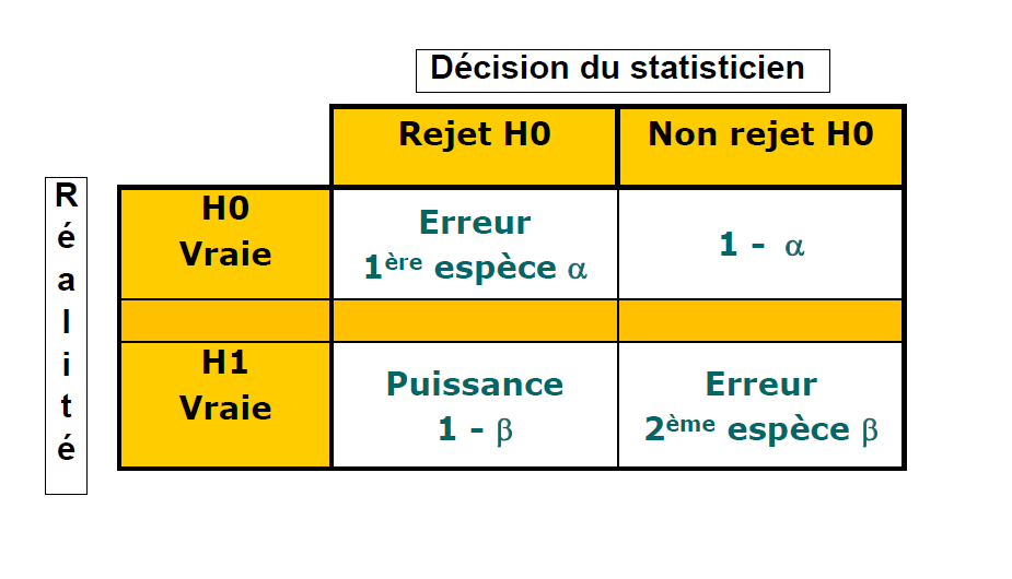 Comme tu peux le voir, la puissance est dans la case "Rejet H0" + "H1 vraie", ce qui revient bien à "conclure à une différence qui existe" :)