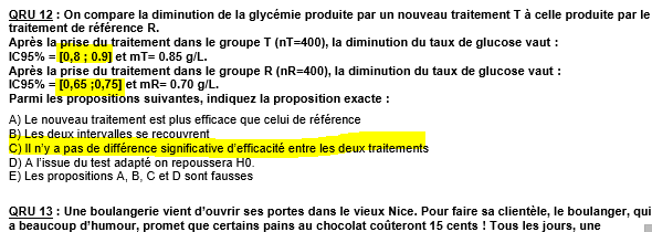 Je ne comprends pas pourquoi la reponse c est fausse alors que les IC n'etant pas significatifs par rapport a la moyenne on aurait pu affirmer que aucun des traitements n'est significatif non ?