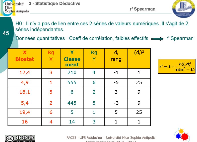 )Ensuite y'a un petit truc qui me dérange.. Dans l'exemple sur le test avec le r' de Spearman (qu'on utilise normalement pour 2 variables quantitatives) on dit :