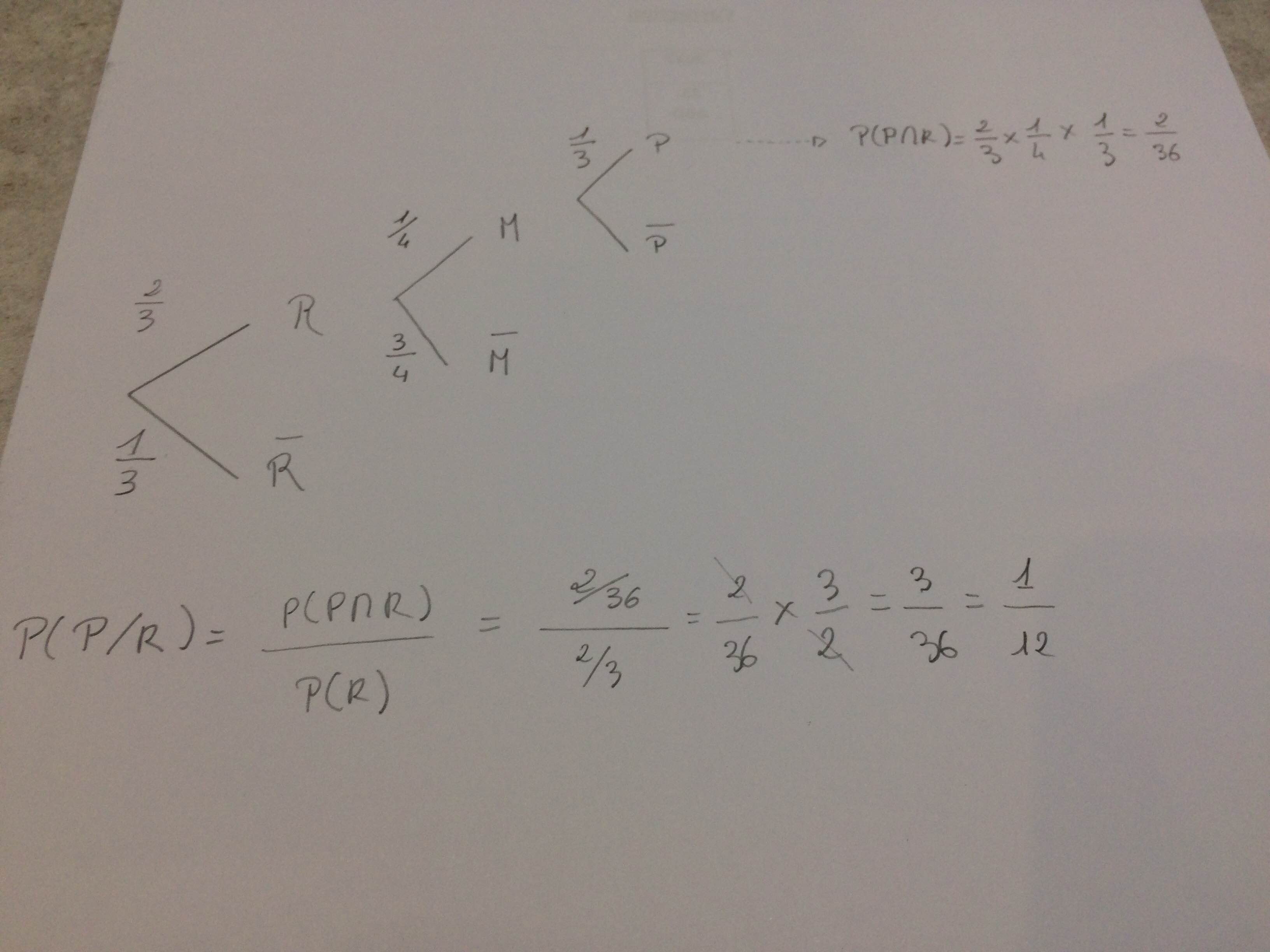 Si je peux te donner un conseil, essaye de simplifier au maximum les calculs pour être efficace et gagner du temps, parce que passer tout de suite au calcul 1/3 * 1/4 fait quand même gagner un temps précieux !!