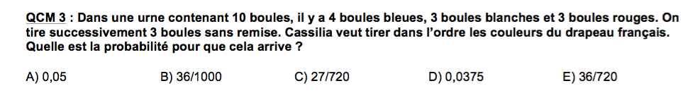 Alors pour résoudre ce QCM on parle de probabilité et pas de dénombrement.
