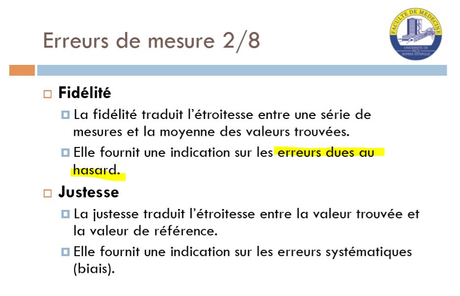 Alors en effet la fidélité renseigne sur les erreurs dues au hasard (car les erreurs aléatoires sont imprévisibles et donc pas fidèles).