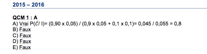 Je ne comprends pas le calcul de la correction de ce QCM ( Annatut 2016-2017)