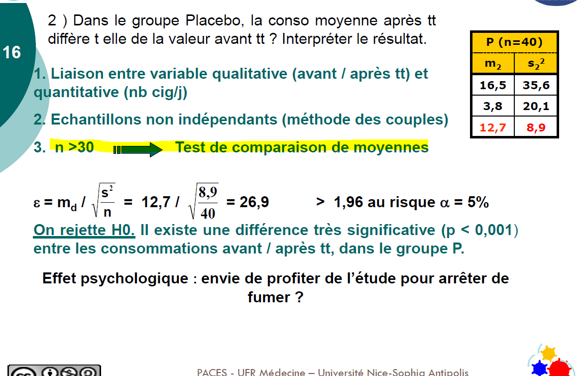 (surtout que ce n'est pas pour séries appariées !! vu qu'on regarde juste le groupe placebo)