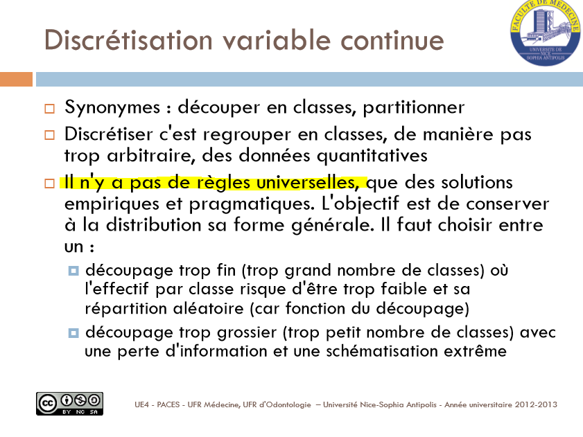 "La discrétisation d'une variable quantitative continue obéit à des règles très précises"