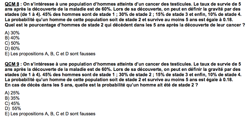 et on sait que P(décès/stade 2) =0,4 (cf qcm 8 )