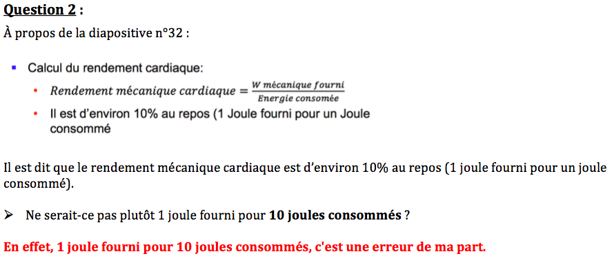 Salut ! Je me demandais si pour un rendement au repos de 10% on aurait pas plutot 1 joule fourni pour 10 consommés plutot que ce qui est écrit dans la diapo de Humber qui correspondrait je pense a un rendement de 100% ??