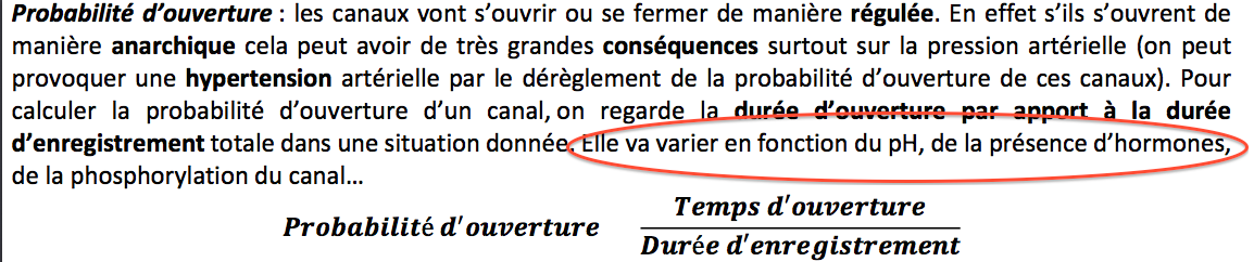 Salut! Alors les réponses justes sont ABCD. A et B: Cette année le prof n'en a pas parlé mais c'était dans le cours de l'année dernière (voir photo ci- dessous). D: c'est dans la loi d'Ohm qui s'applique à n'importe quel expérience patch -clamp: intensité (mesurée)/voltage(clampé)= conductance(calculée) Voilà! J'espère que c'est good pour toi