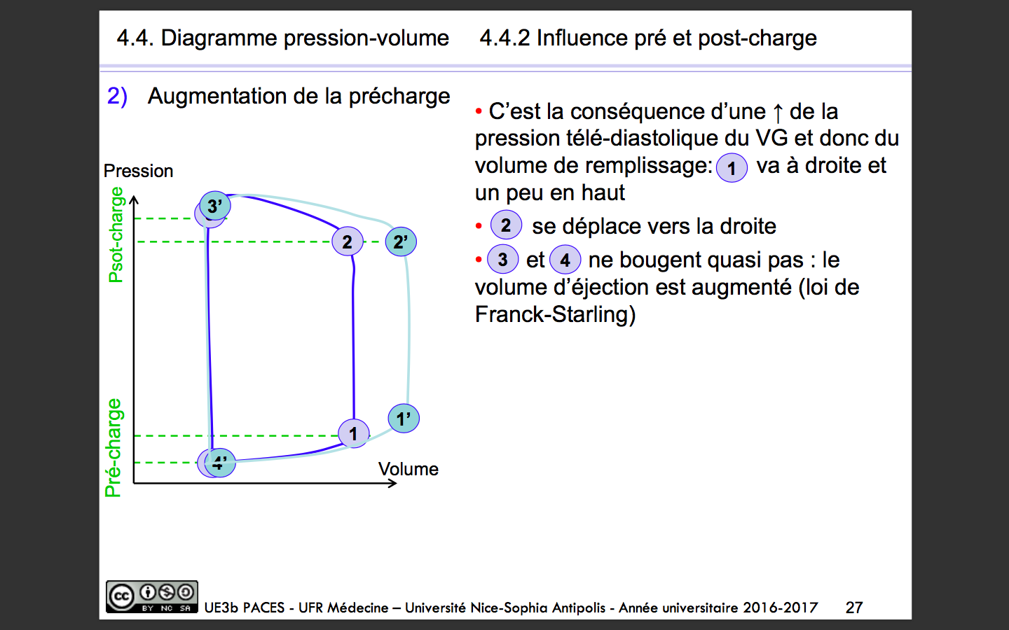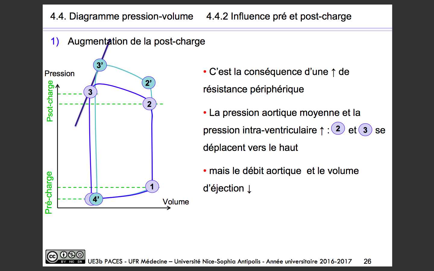 Ce qu'il faut comprendre c'est qu'une augmentation de la post charge va entrainer une augmentation des pressions d'éjections car le coeur va devoir lutter contre des pressions plus importantes ! Donc les pressions au niveau des point 2 et 3 augmentent et le VTS augmente aussi en l'absence d'une augmentation de la contractilité lors d'une augmentation de la post charge !! ;)