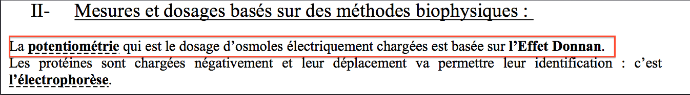 La potentiométrie se fait avec des membranes perméables à un seul ion, en utilisant l'effet Donnan