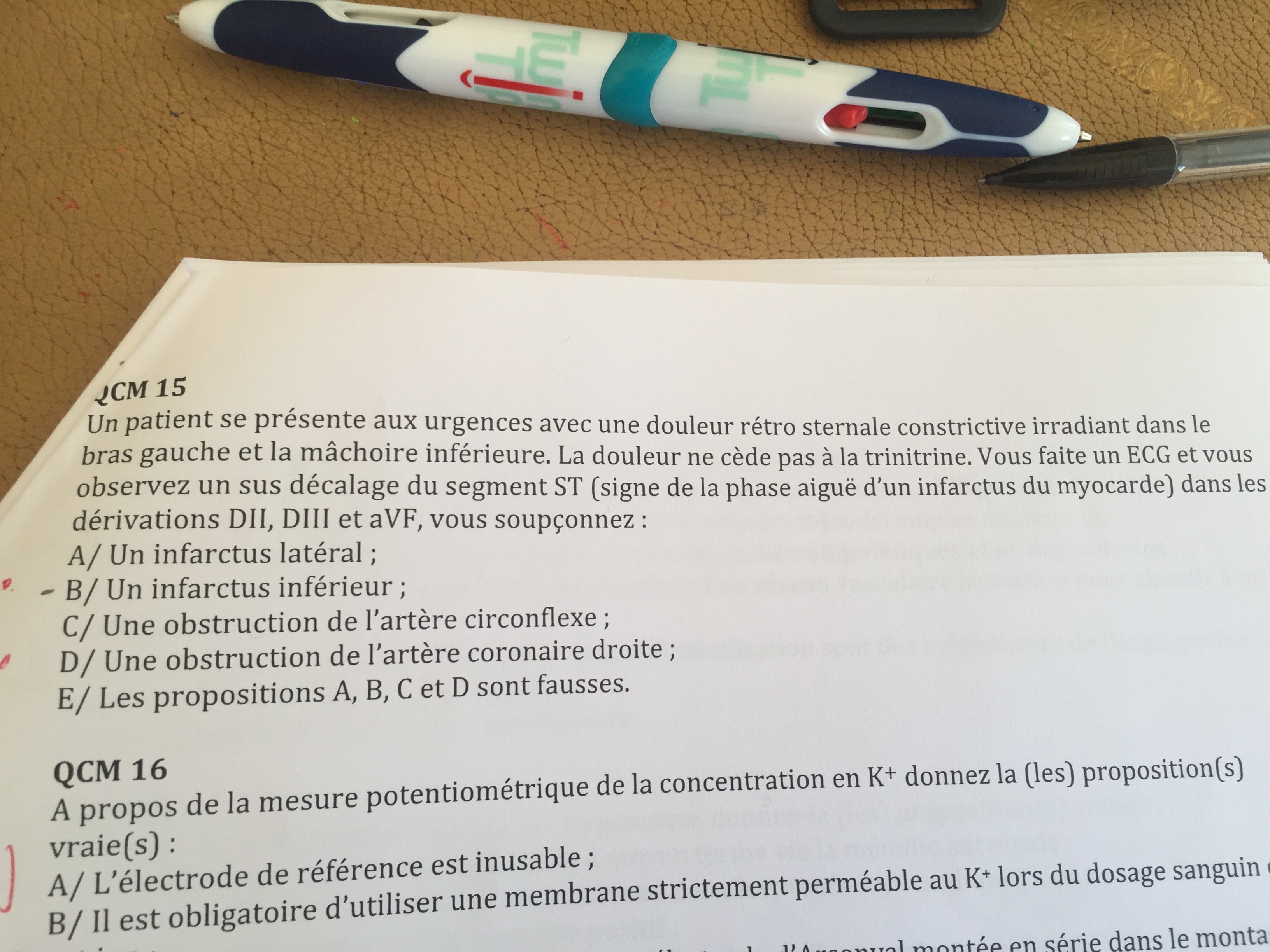 Juste pour etre sur, comme le sus décalage est au milieu et en bas suivant les 3 dérivations de l'énoncé et que Le coeur est dejeté à gauche, on peut dire qu'il y a un pb au niveau de l'artère coronaire droite ?